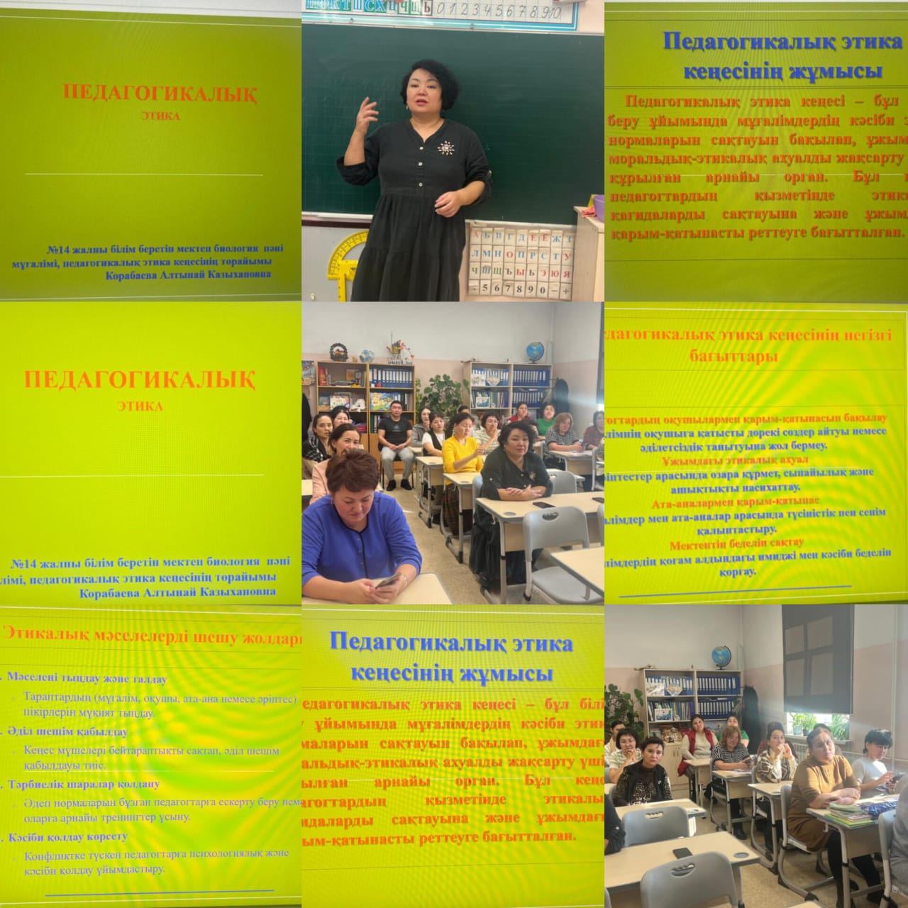 Педагогикалық әдеп жөніндегі кеңес, 2025 жылдың 5 қаңтар күні №14 ЖББМ мұғалімдерімен кеңес өтілді.Жалпы мақсаттар: