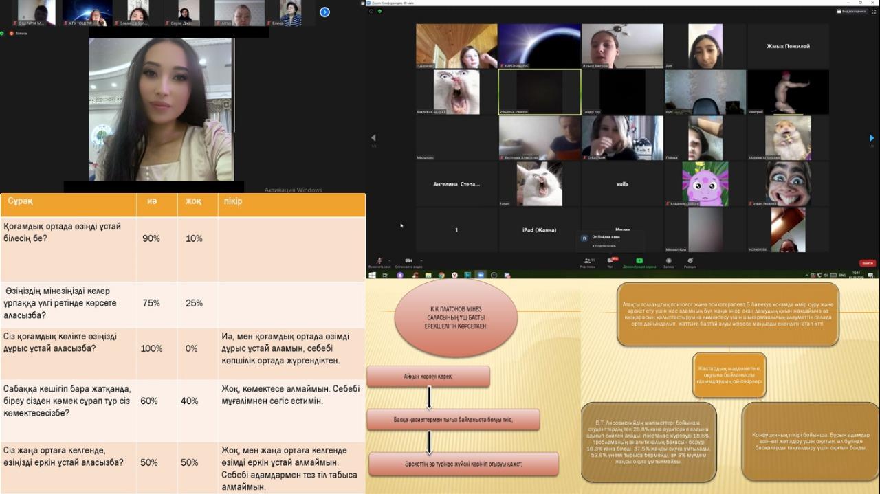 Өткізілген кездесу барысында оқушылар барынша ашық болып, психологтың дайындаған сұрақтарына жауап бере білді. Бұл шараны қорытындылау барысында оқушылардың алған ақпаратты игере білгендігі байқалды.