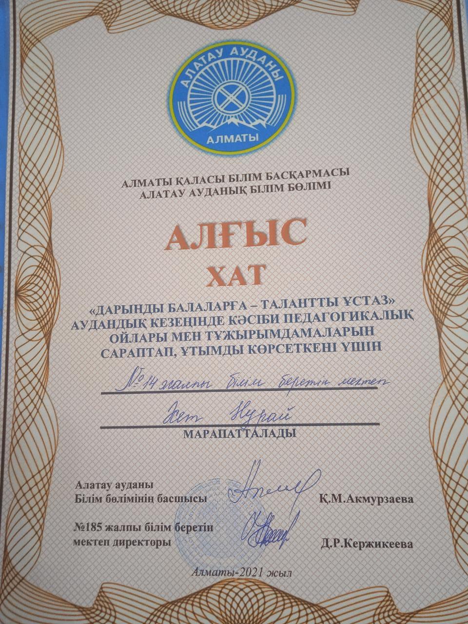 25 ақпан 2022 0 1 2 3 4 5 "Дарынды балаларға - талантты ұстаз" Әсет Нұрай "Дарынды балаларға - талантты ұстаз" Аудандық кезеңінде кәсіби педагогикалық ойлары мен тұжырымдамаларын сараптап, ұтымды көрсеткені үшін мектебіміздің жас маманы Әсет Нұрай алғыс хатпен марапатталды. Құттықтаймыз! Осы беттің QR-коды:QR-код этой страницы: