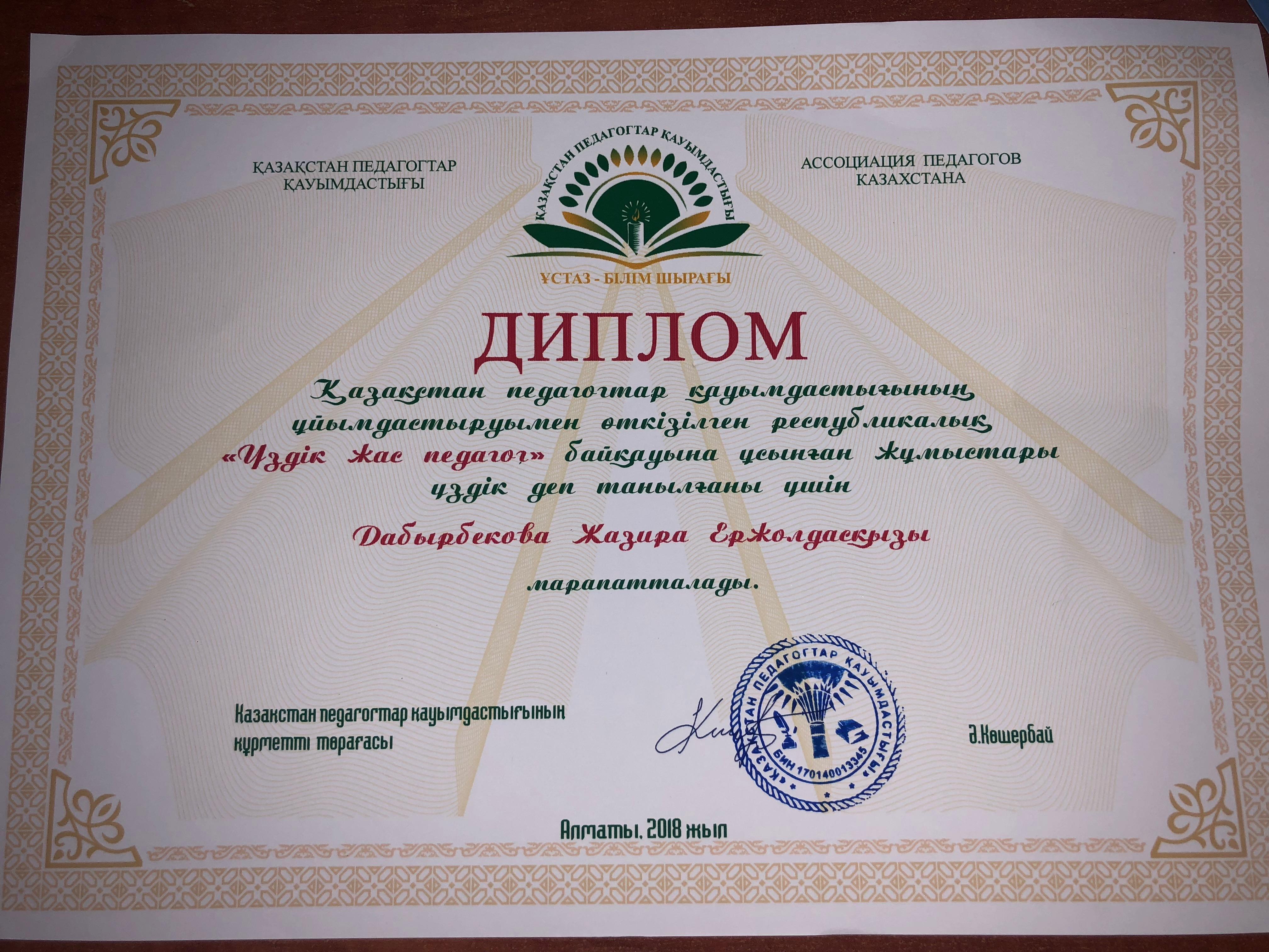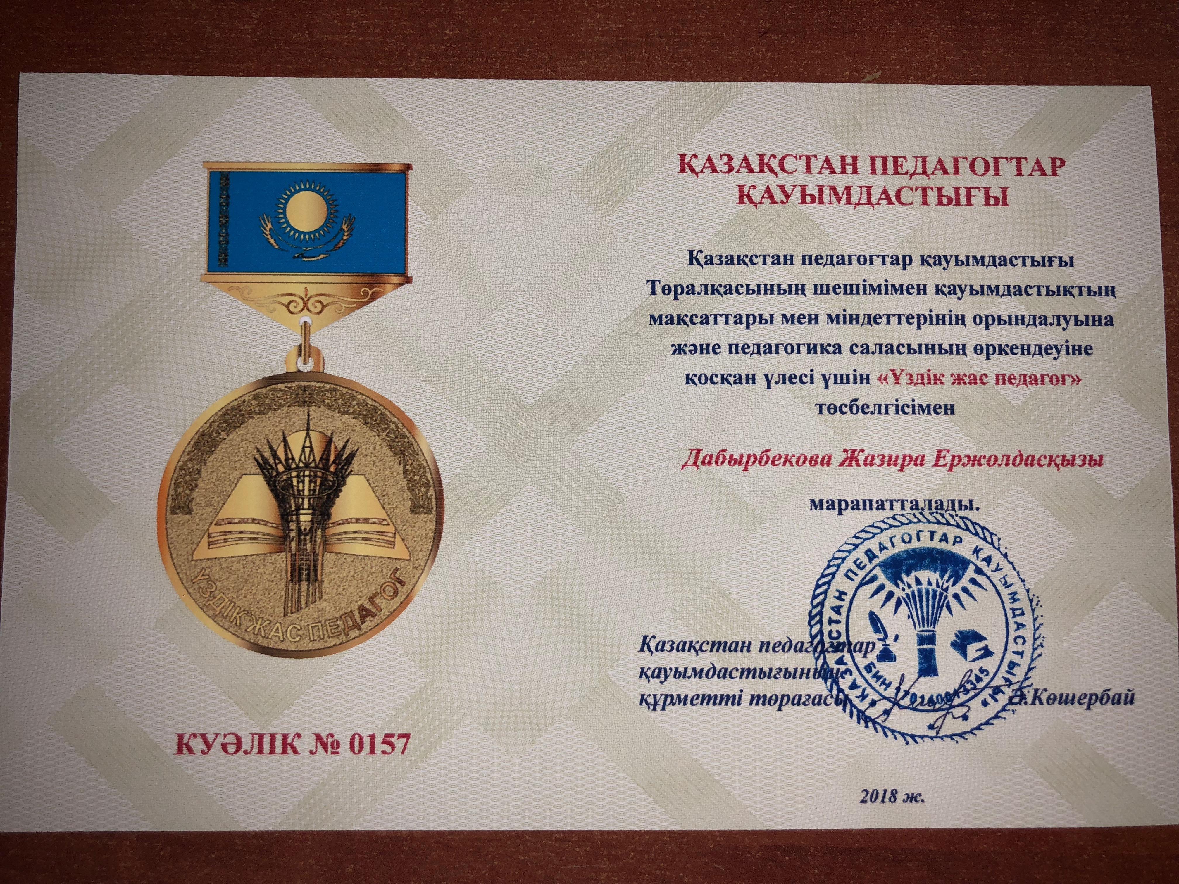 04 қаңтар 2019 0 1 2 3 4 5 Қазақстан педагогтар қауымдстығының ұйымдастыруымен өткізілген республикалық "Үздік жас педагог" байқауына ұсынған жұмыстары үздік деп танылғаны үшін Осы беттің QR-коды:QR-код этой страницы:
