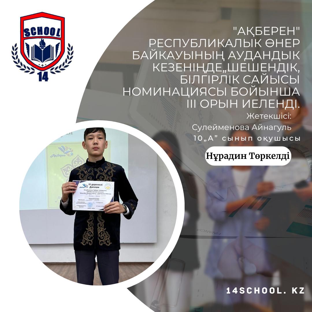 19 қазан 2023 0 1 2 3 4 5 «Ақберген” Республикалық өнер байқауының аудандық кезеңінде,шешендік,білгірлік сайысы номинациясы бойынша 10 “ А” сынып оқушысы Нұрадин Төркелді III о Осы беттің QR-коды:QR-код этой страницы: