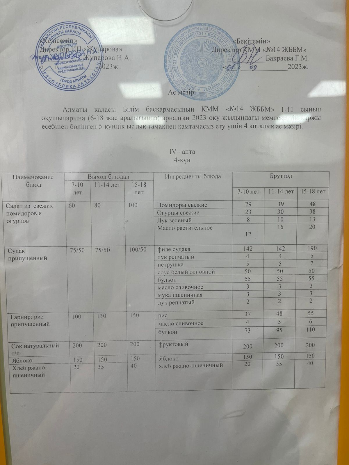 КГУ «Общеобразовательная школа №14 » Управления образования г.Алматы