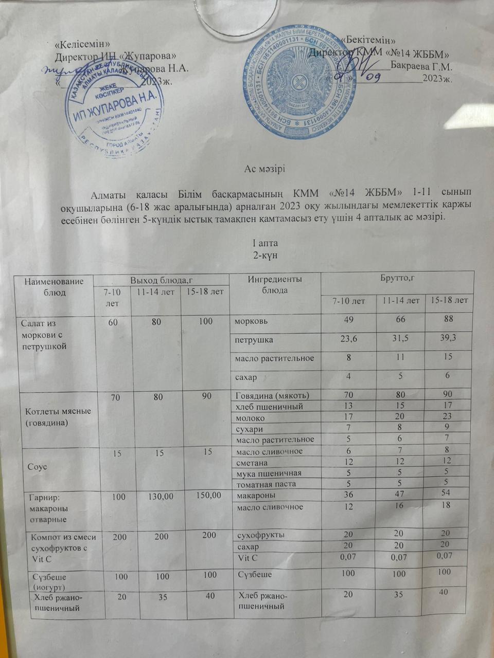 Ас мәзірі 07.11.2023ж