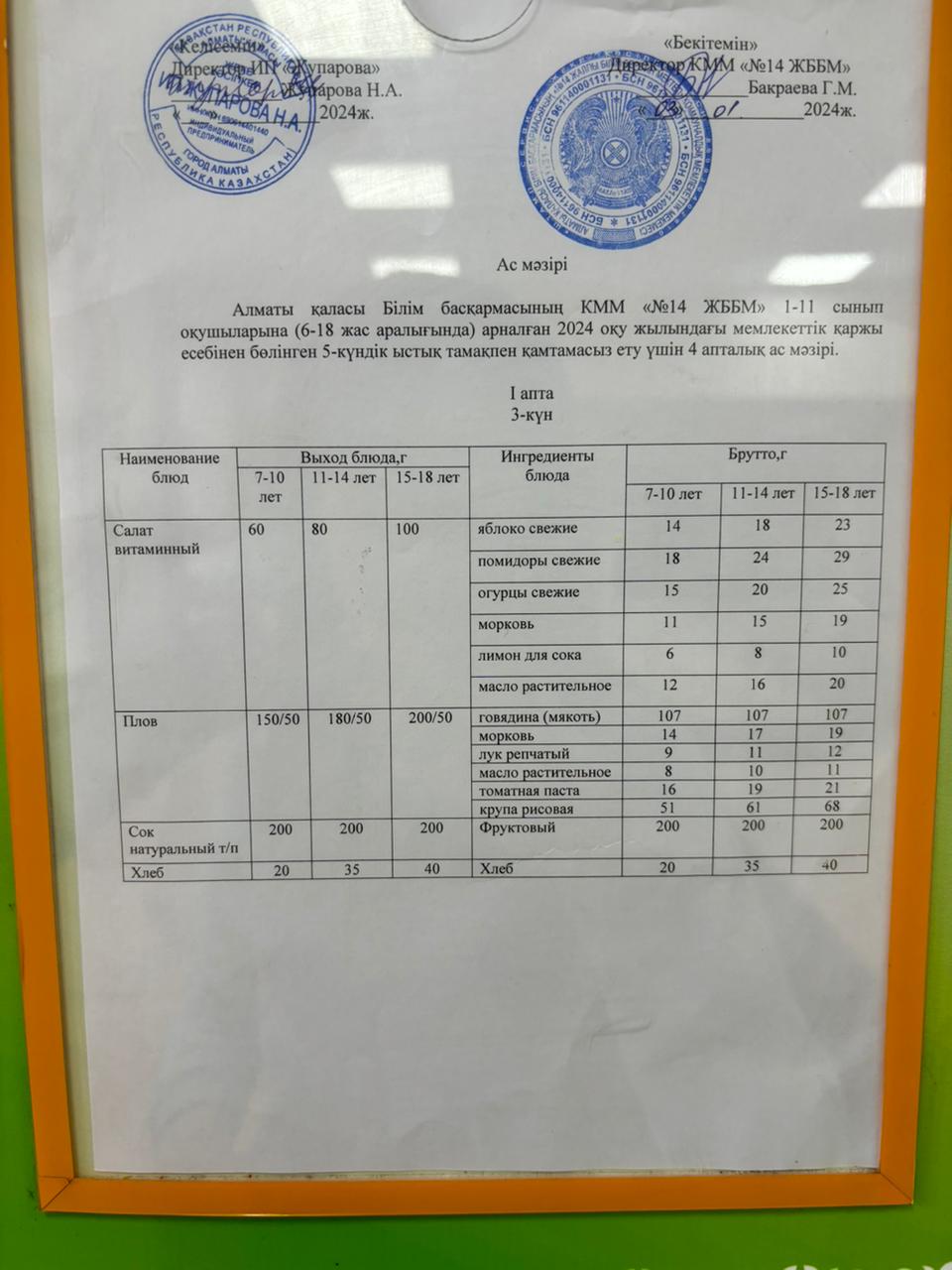 Ас мәзірі 10.01.24ж