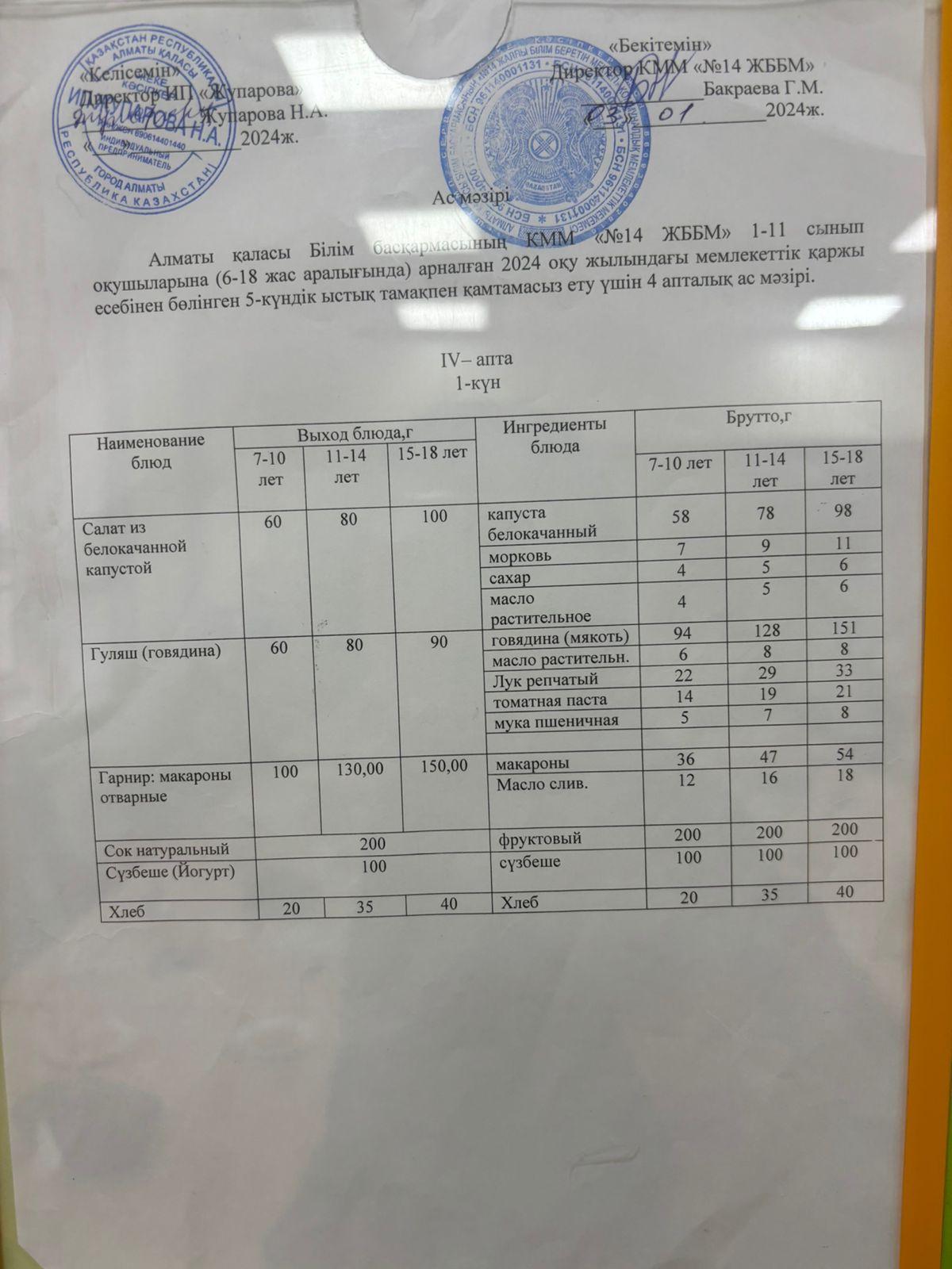 Ас мәзірі 20.05.24ж