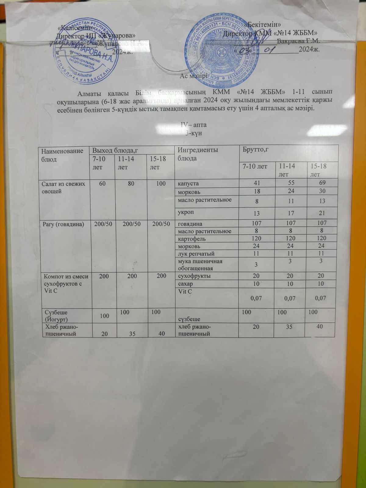 КГУ «Общеобразовательная школа №14 » Управления образования г.Алматы