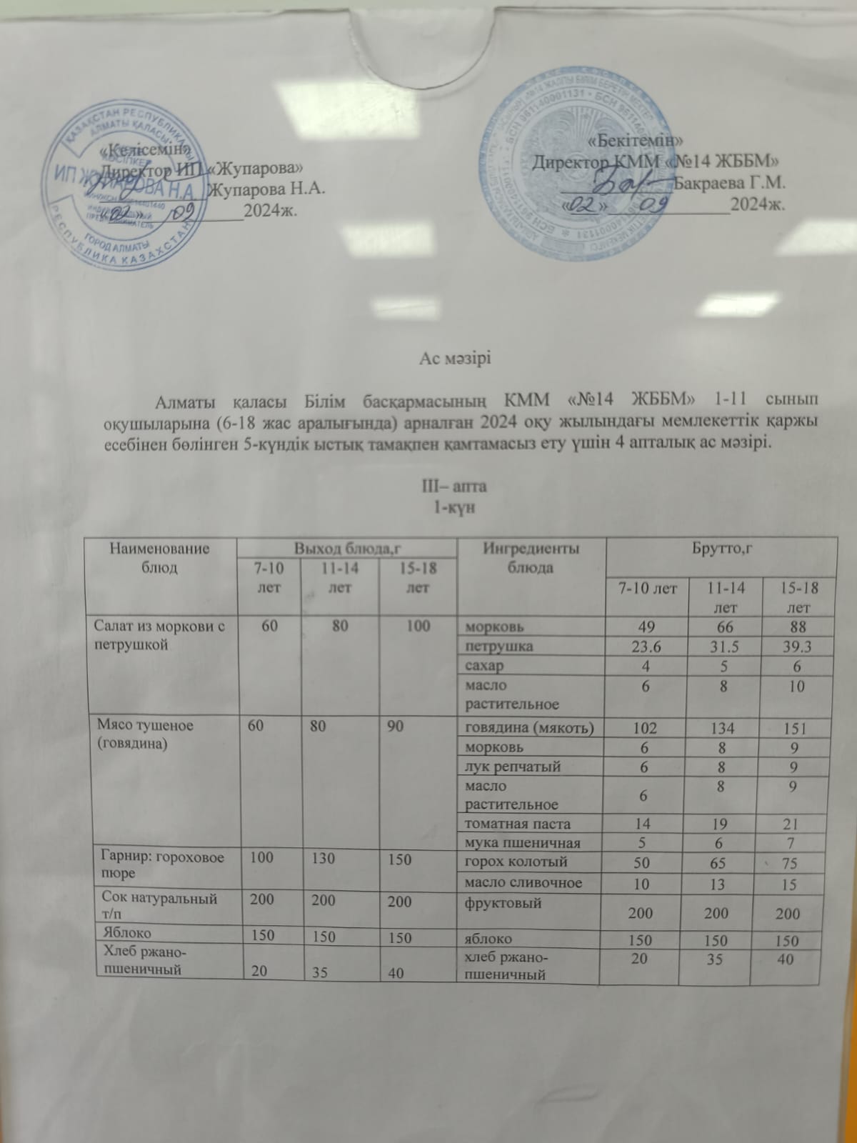 Ас мәзірі 20.09.2024ж.