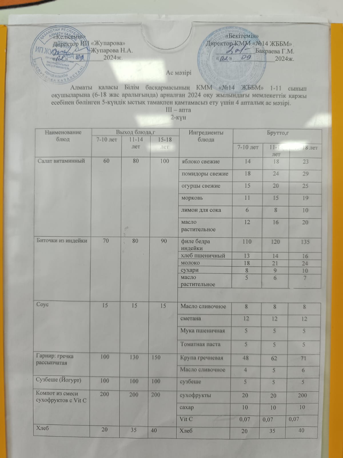 Ас мәзірі 20.09.2024ж.