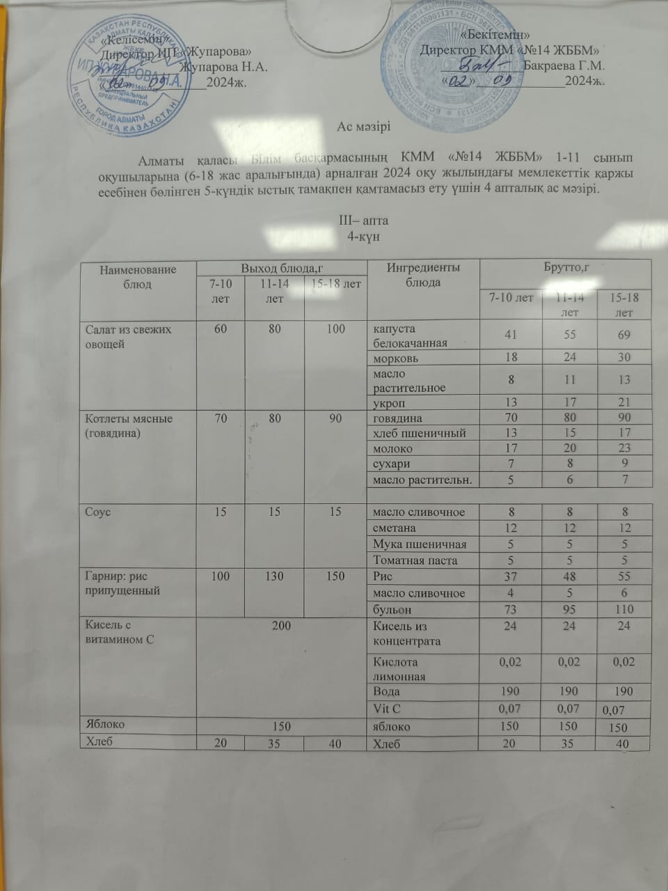 Ас мәзірі 20.09.2024ж.
