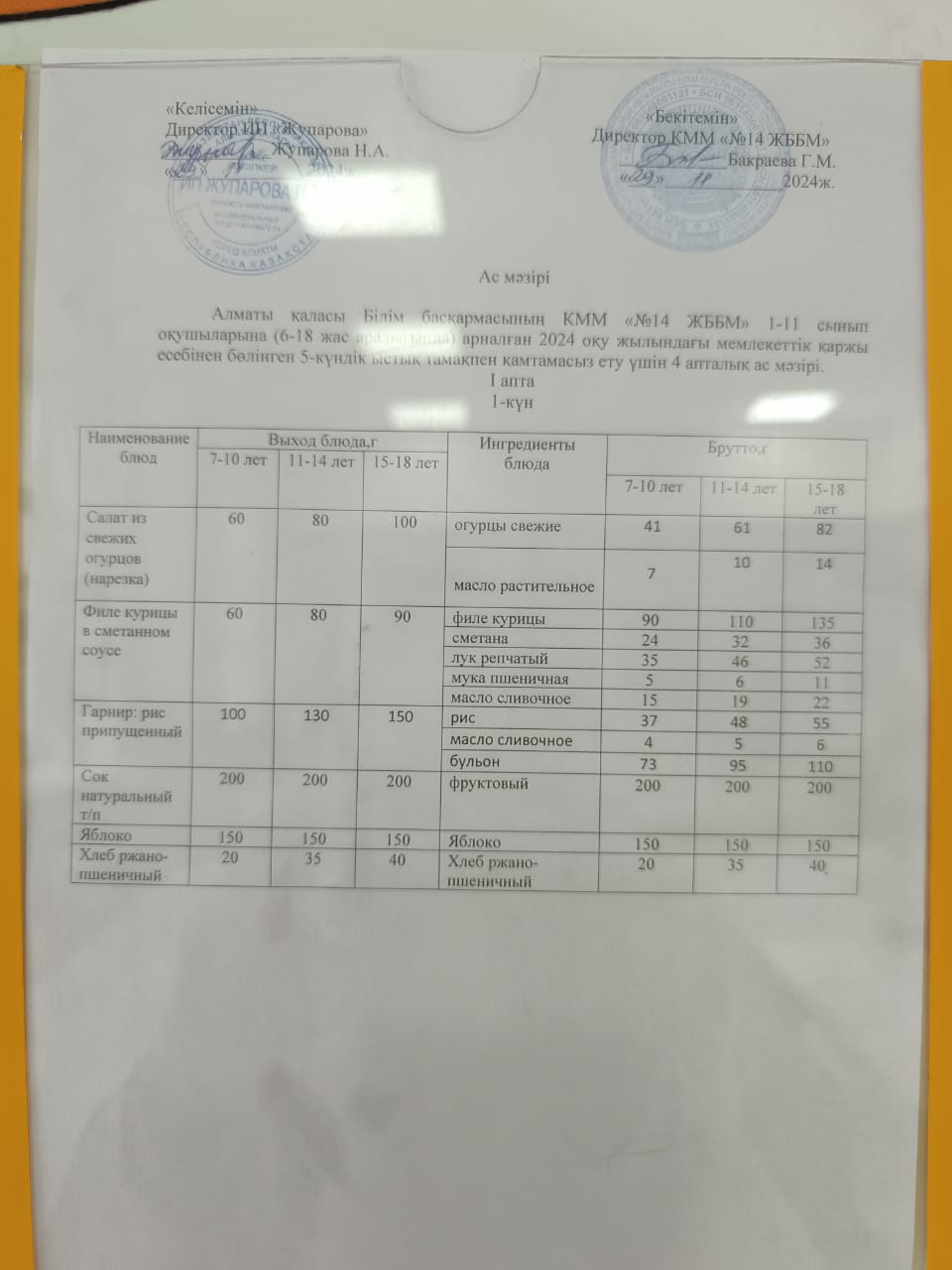 КГУ «Общеобразовательная школа №14 » Управления образования г.Алматы