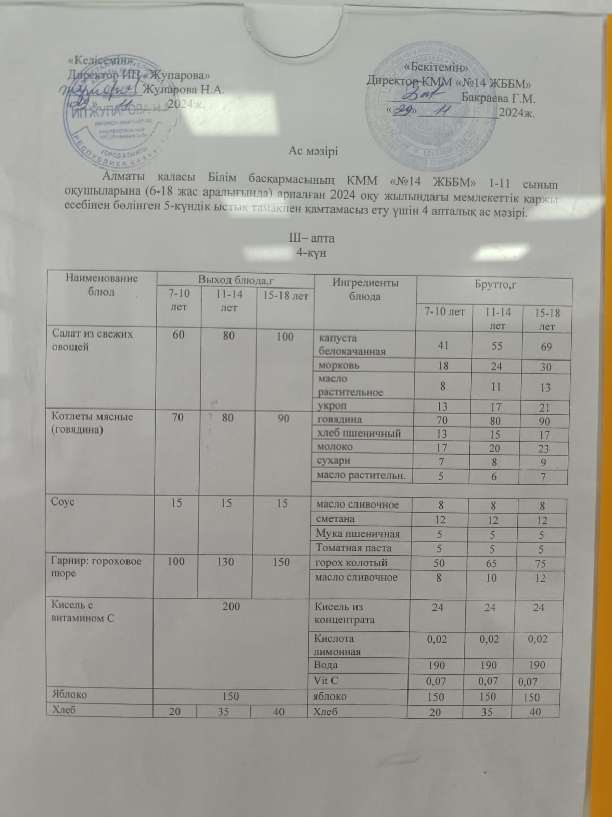 Ас мәзірі 26.11.2024ж.