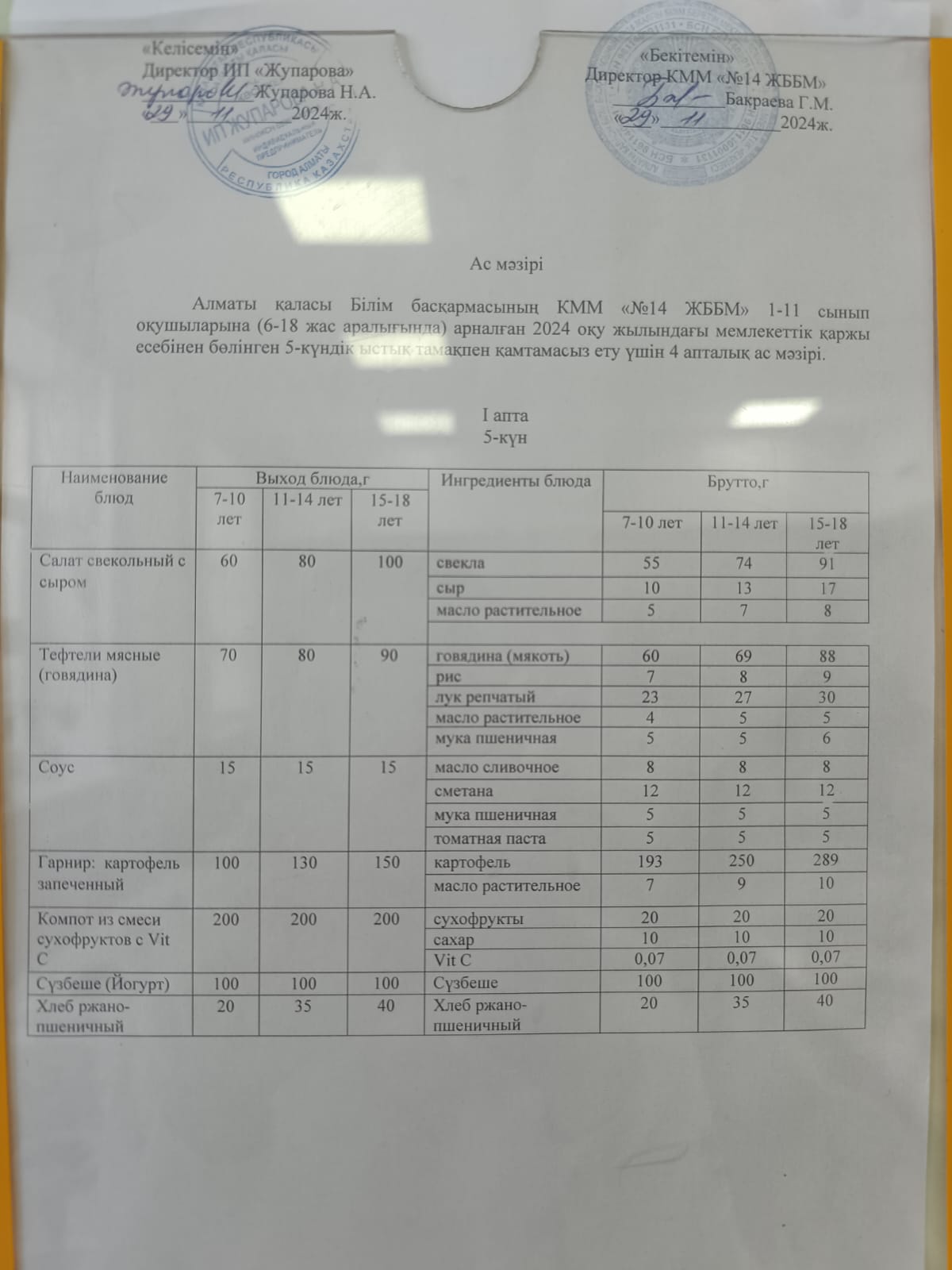 Ас мәзірі 16.05.23ж