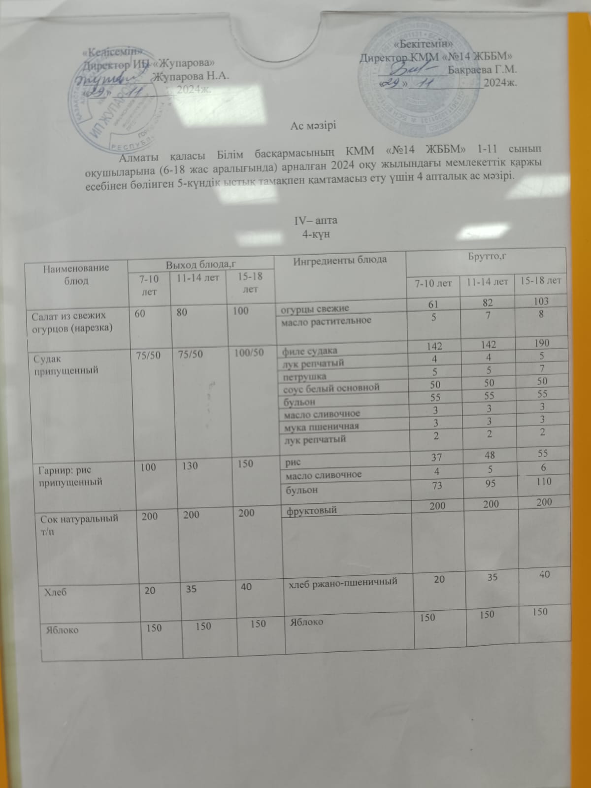 КГУ «Общеобразовательная школа №14 » Управления образования г.Алматы