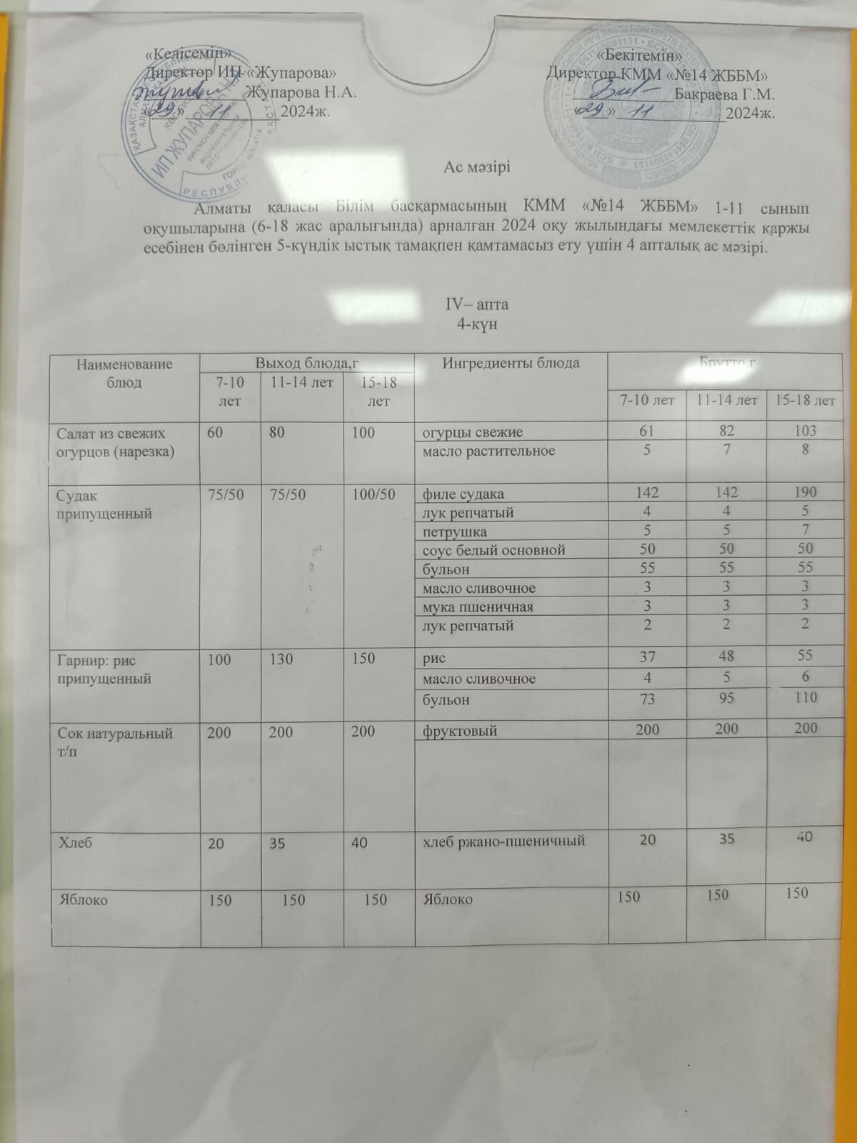 КГУ «Общеобразовательная школа №14 » Управления образования г.Алматы