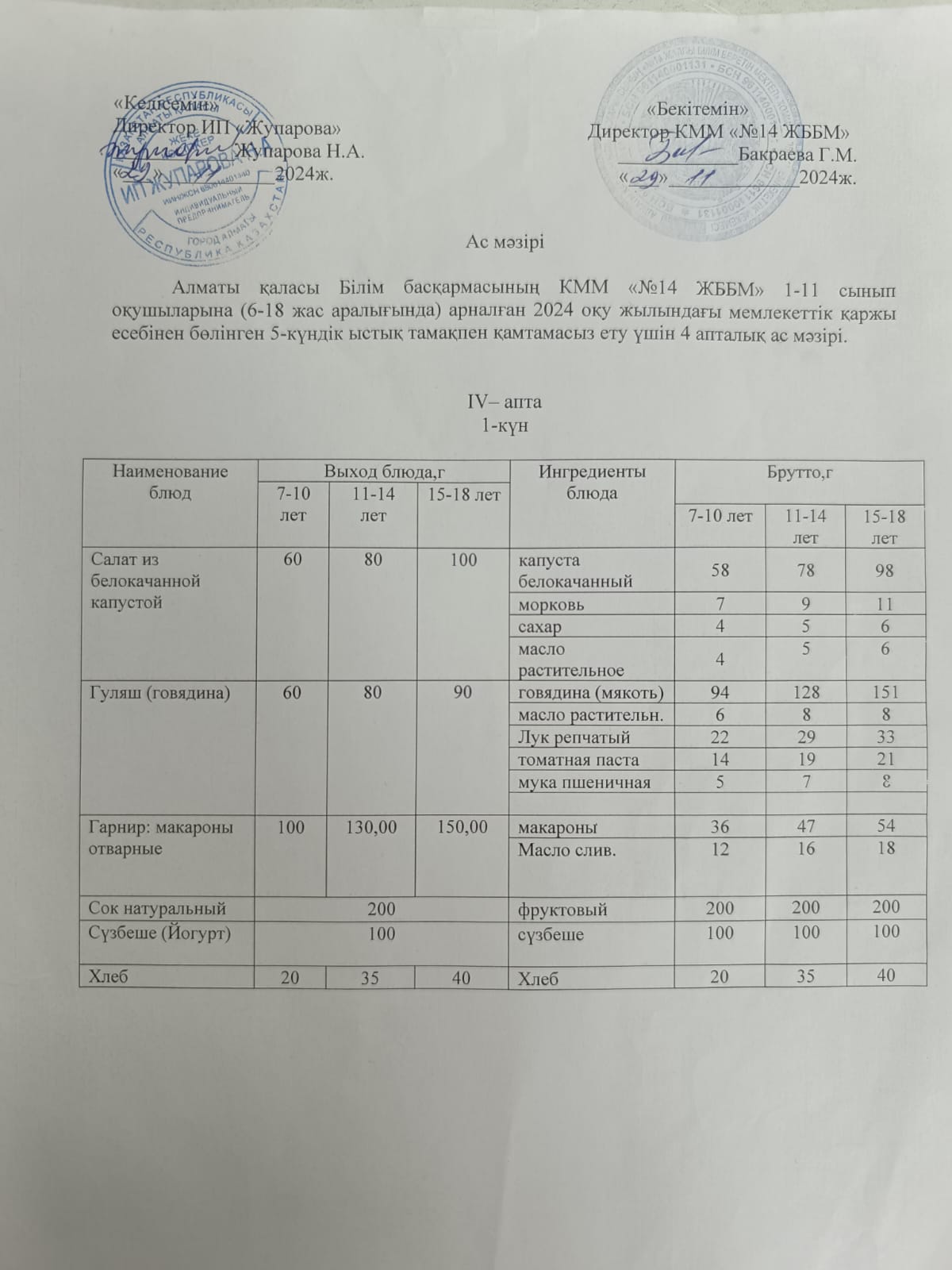 КГУ «Общеобразовательная школа №14 » Управления образования г.Алматы