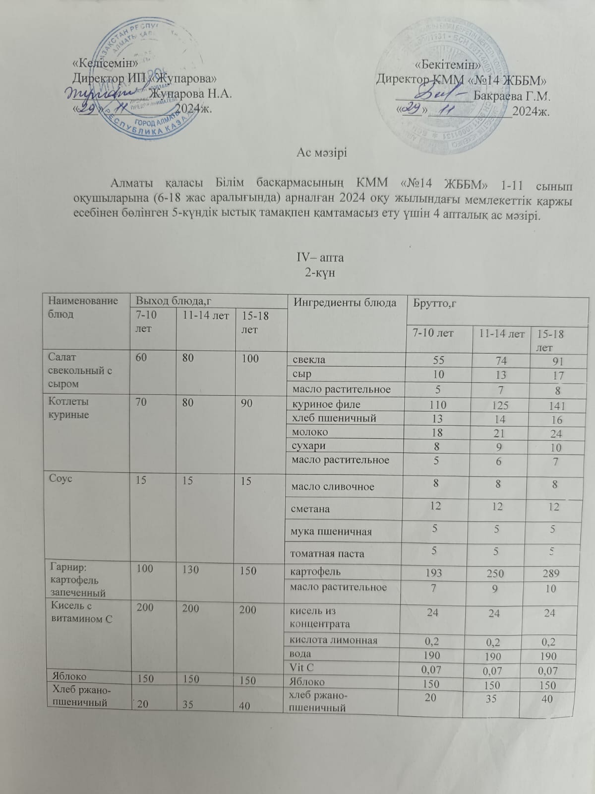 Ас мәзірі 20.05.2025ж.