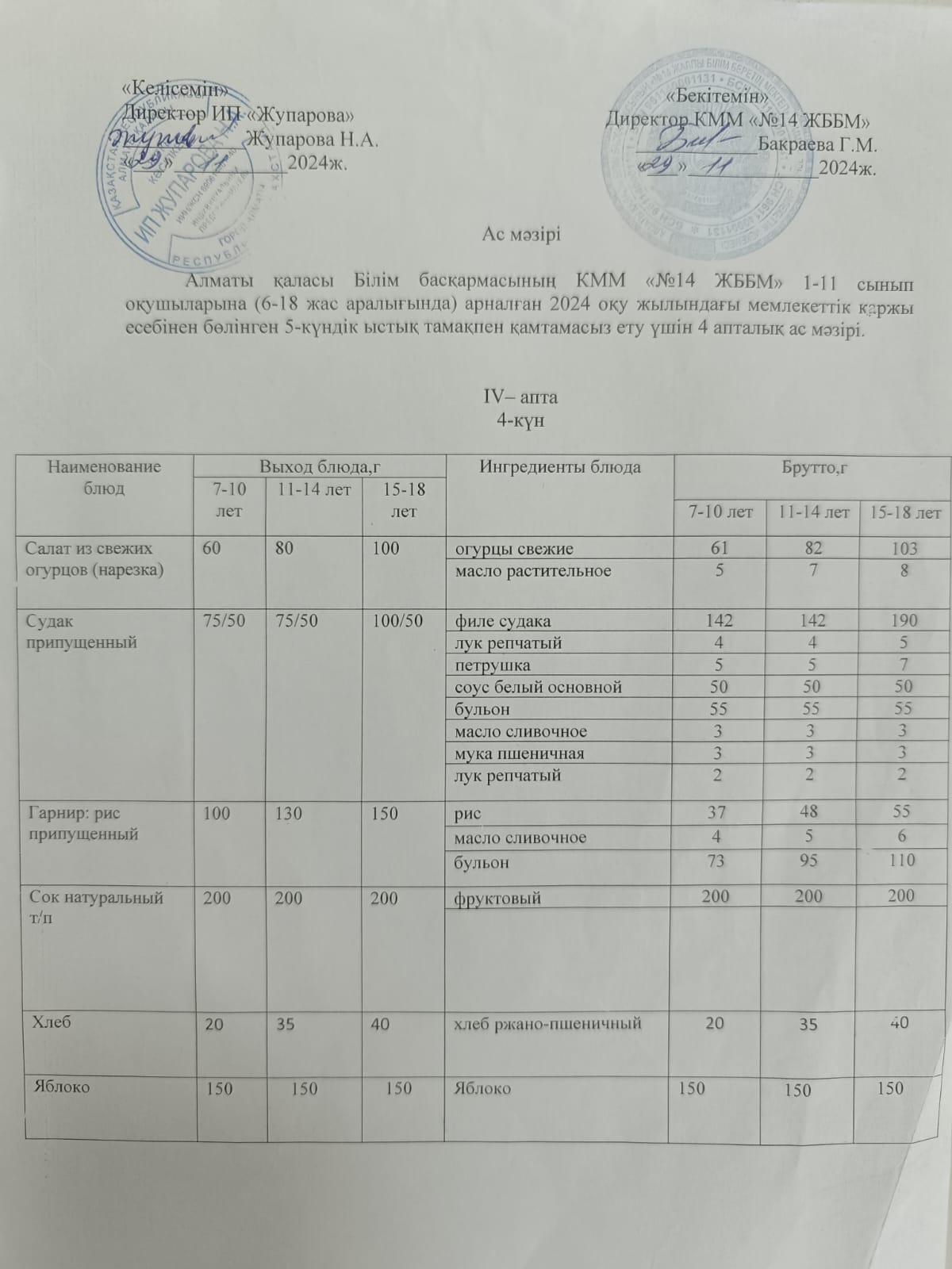 Ас мәзірі 19.05.2025ж.