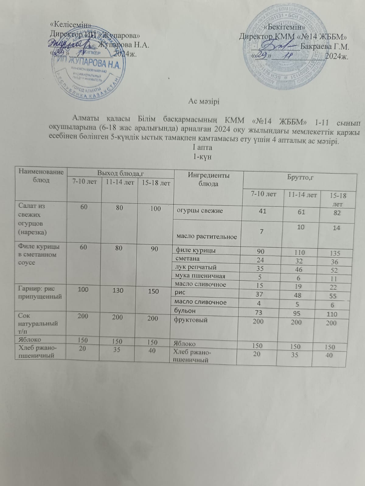 КГУ «Общеобразовательная школа №14 » Управления образования г.Алматы