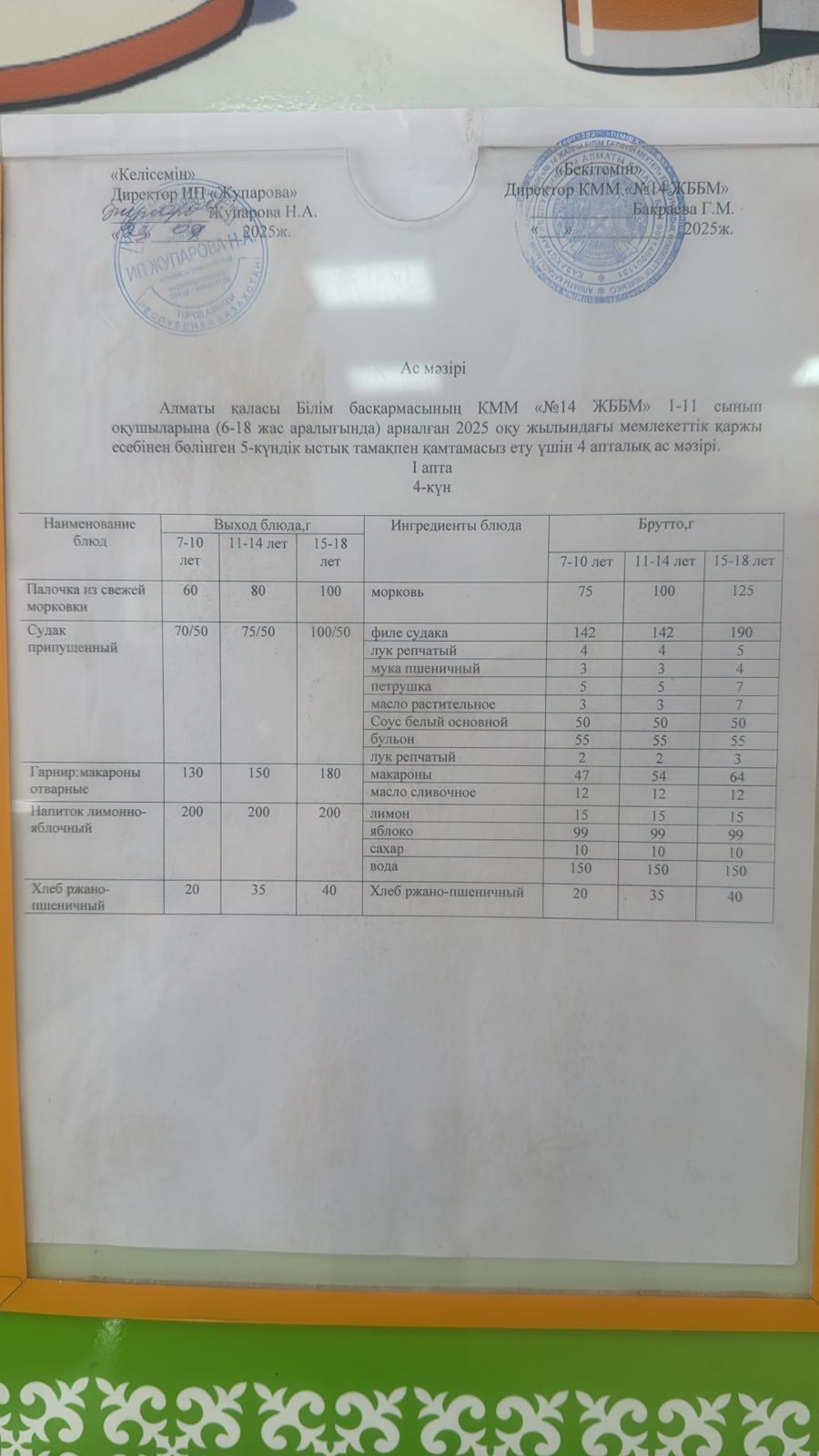 Ас мәзірі 30.05.2025ж. жазғы лагерь