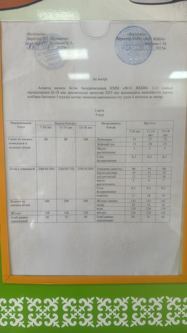 » Ас мәзірі 05.09.2025ж.