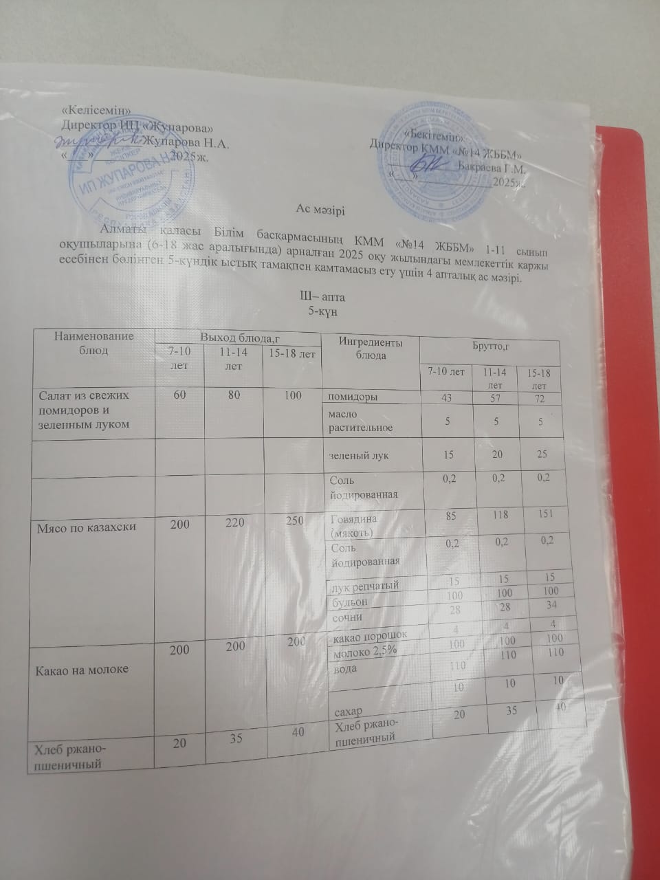 Ас мәзірі 30.05.2025ж. жазғы лагерь