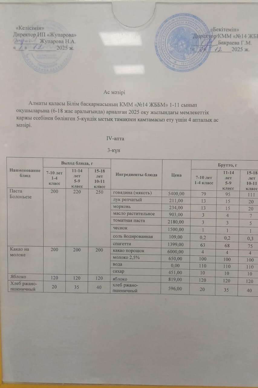 КГУ «Общеобразовательная школа №14 » Управления образования г.Алматы