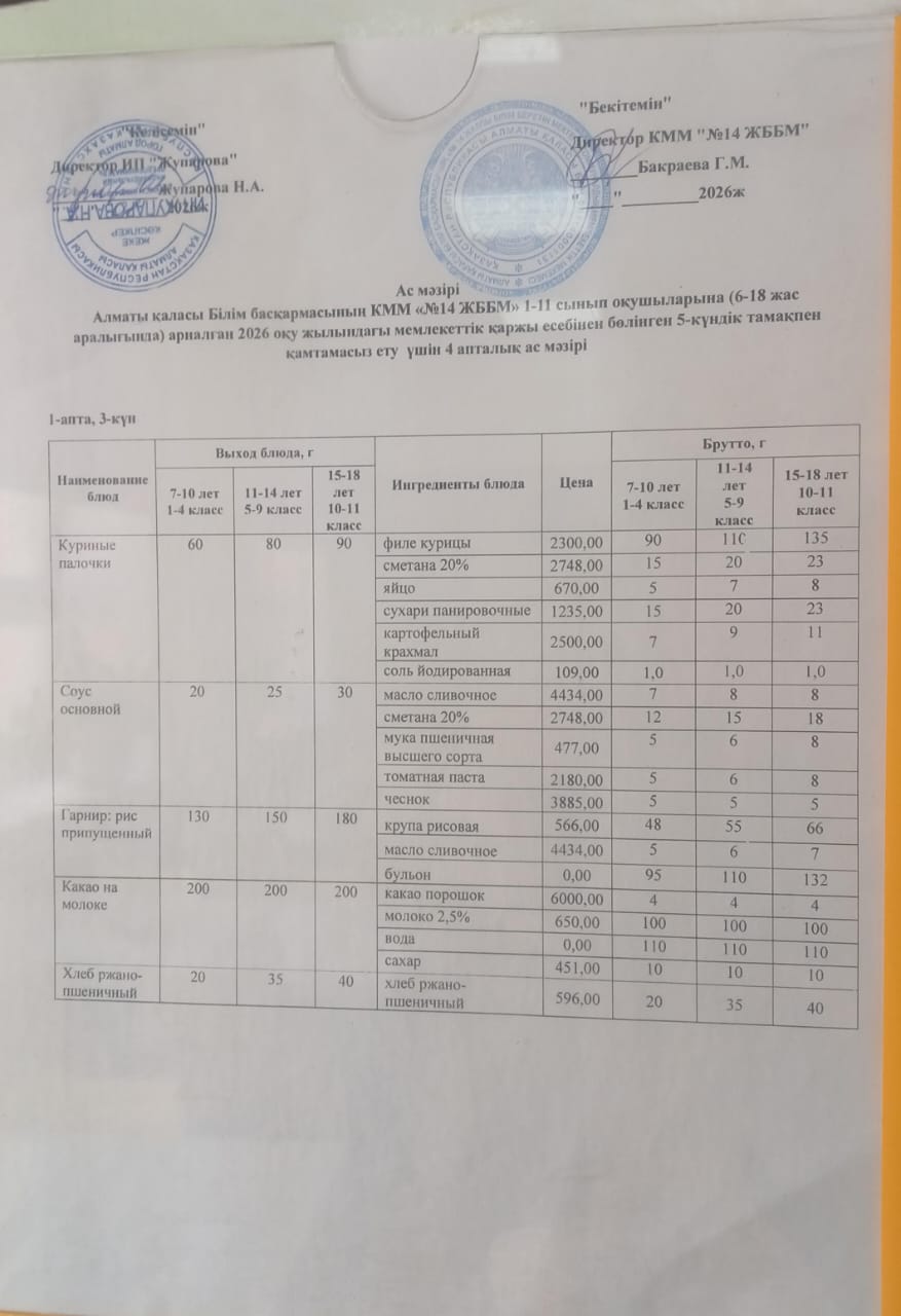 КГУ «Общеобразовательная школа №14 » Управления образования г.Алматы