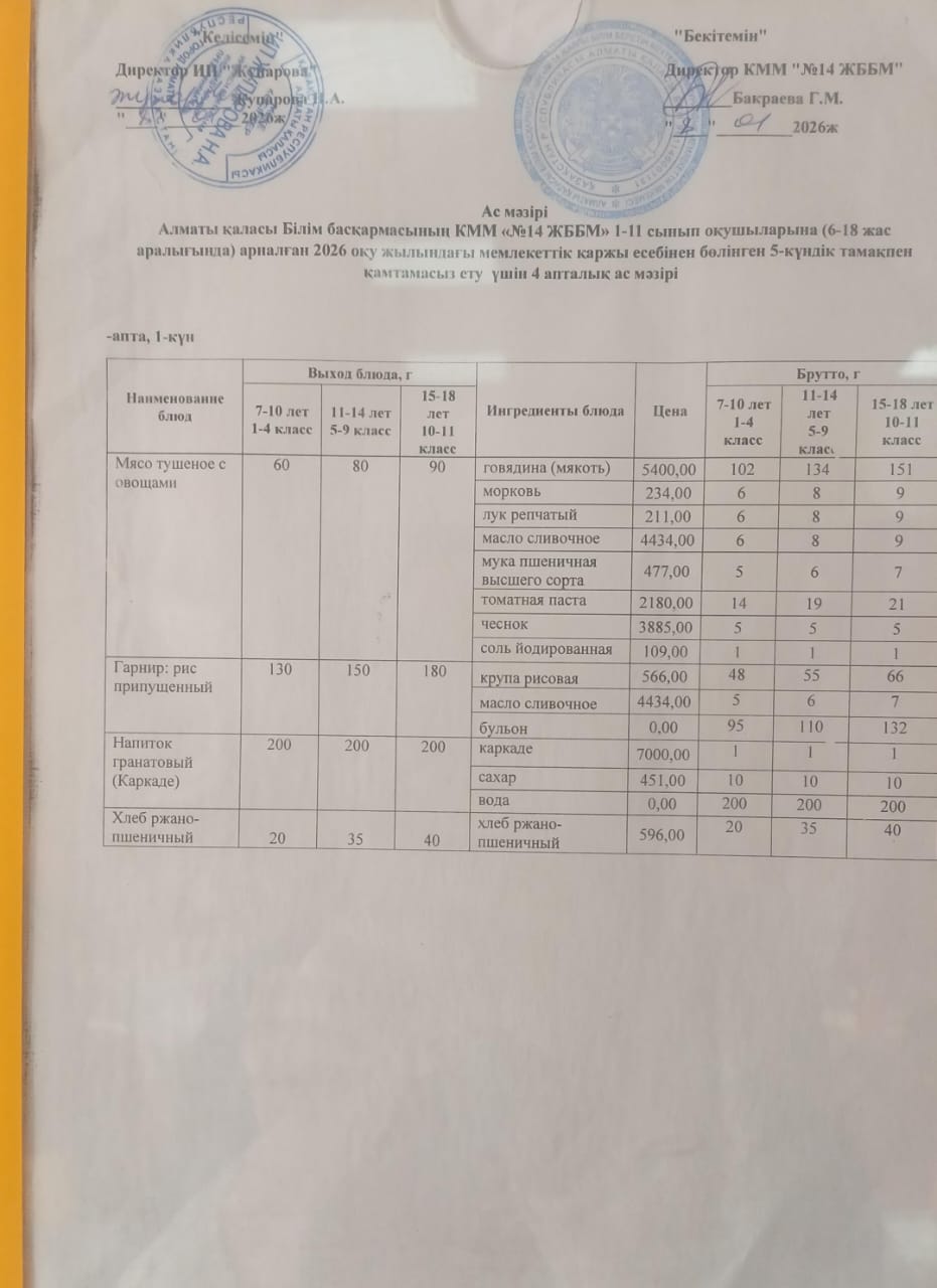 КГУ «Общеобразовательная школа №14 » Управления образования г.Алматы