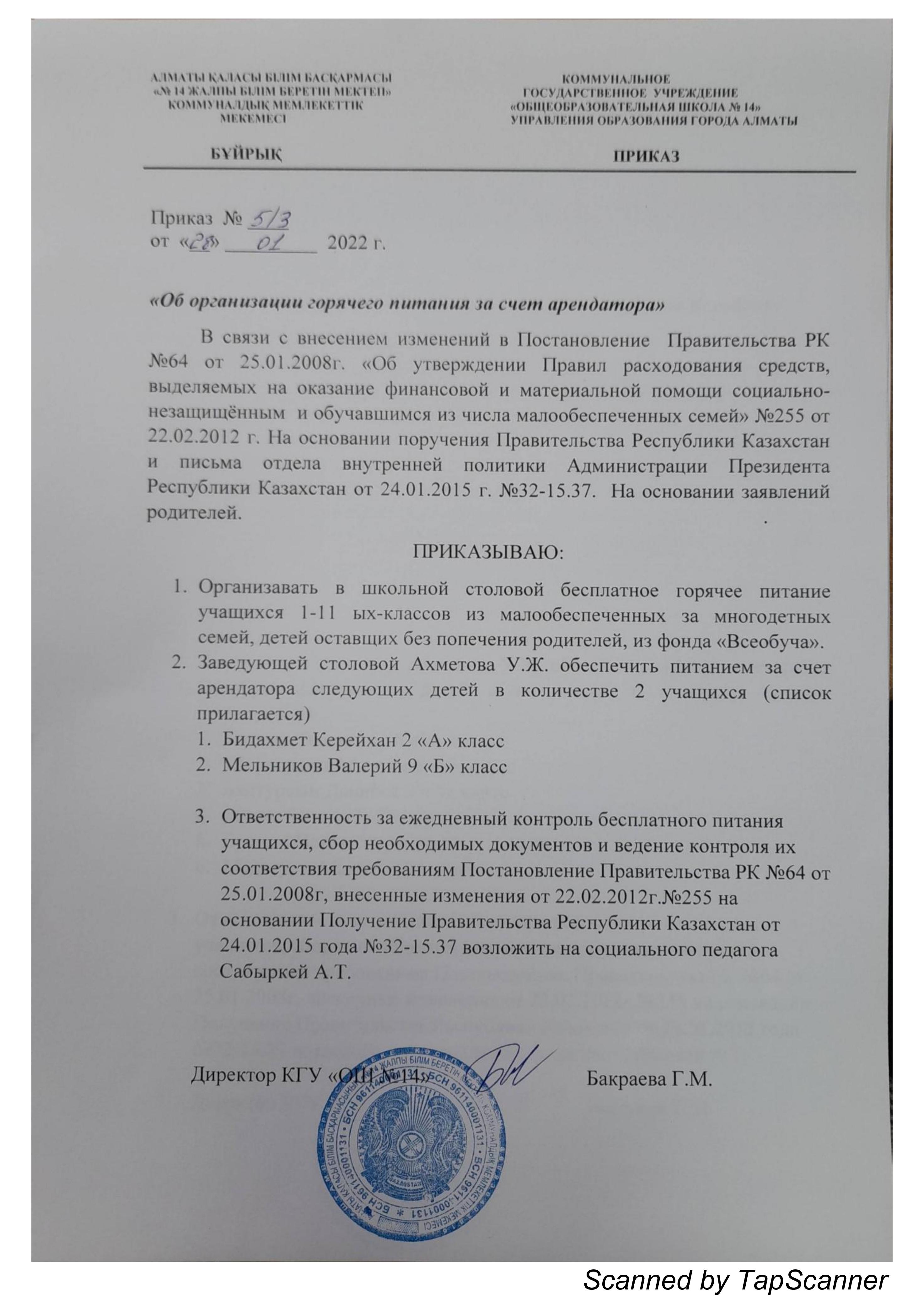 14 ақпан 2022 Жеке қоры есебінен жалға алушының есебінен ыстық тамақты ұйымдастыру туралы бұйрық Осы беттің QR-коды:QR-код этой страницы: