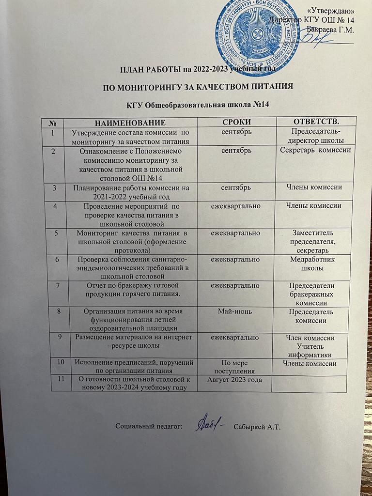 Сапаны бақылау бойынша мектеп сараптау тобының жұмыс жоспары