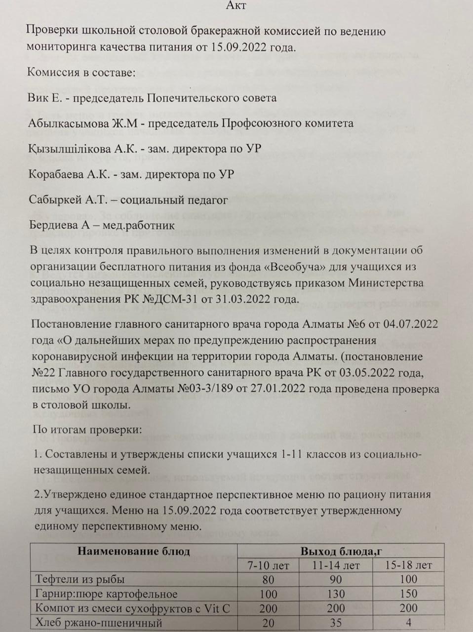 06 қазан 2022 0 1 2 3 4 5 Тамақтану сапасын бақылау бойынша неке комиссиясының мектеп асханасын тексеру актісі 15.09.22ж Осы беттің QR-коды:QR-код этой страницы: