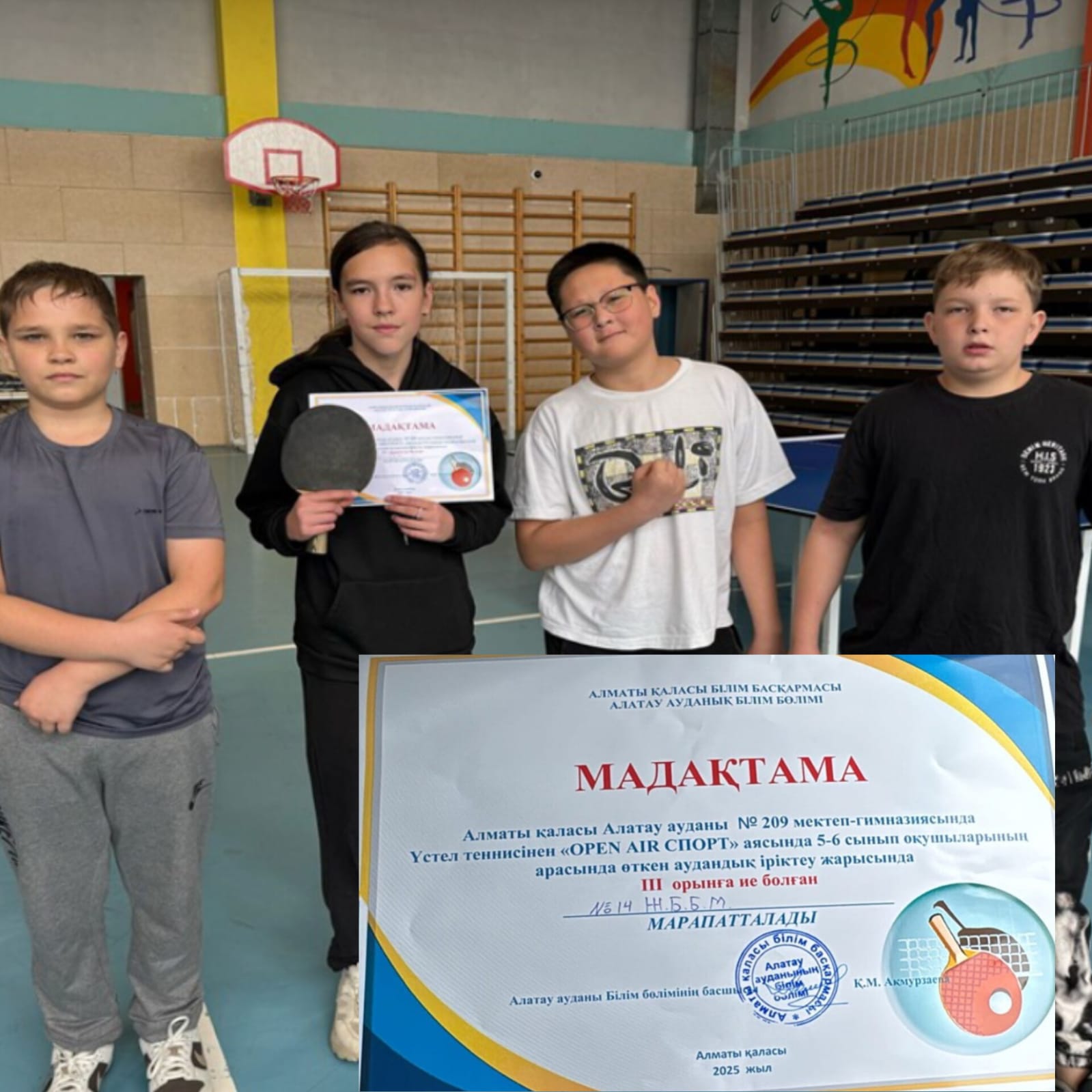18.04.2025 года ученики 6 «Б» класса участвовали на соревнования по настольному теннису в рамках «Open AIR Спорт» и заняли 3 место.