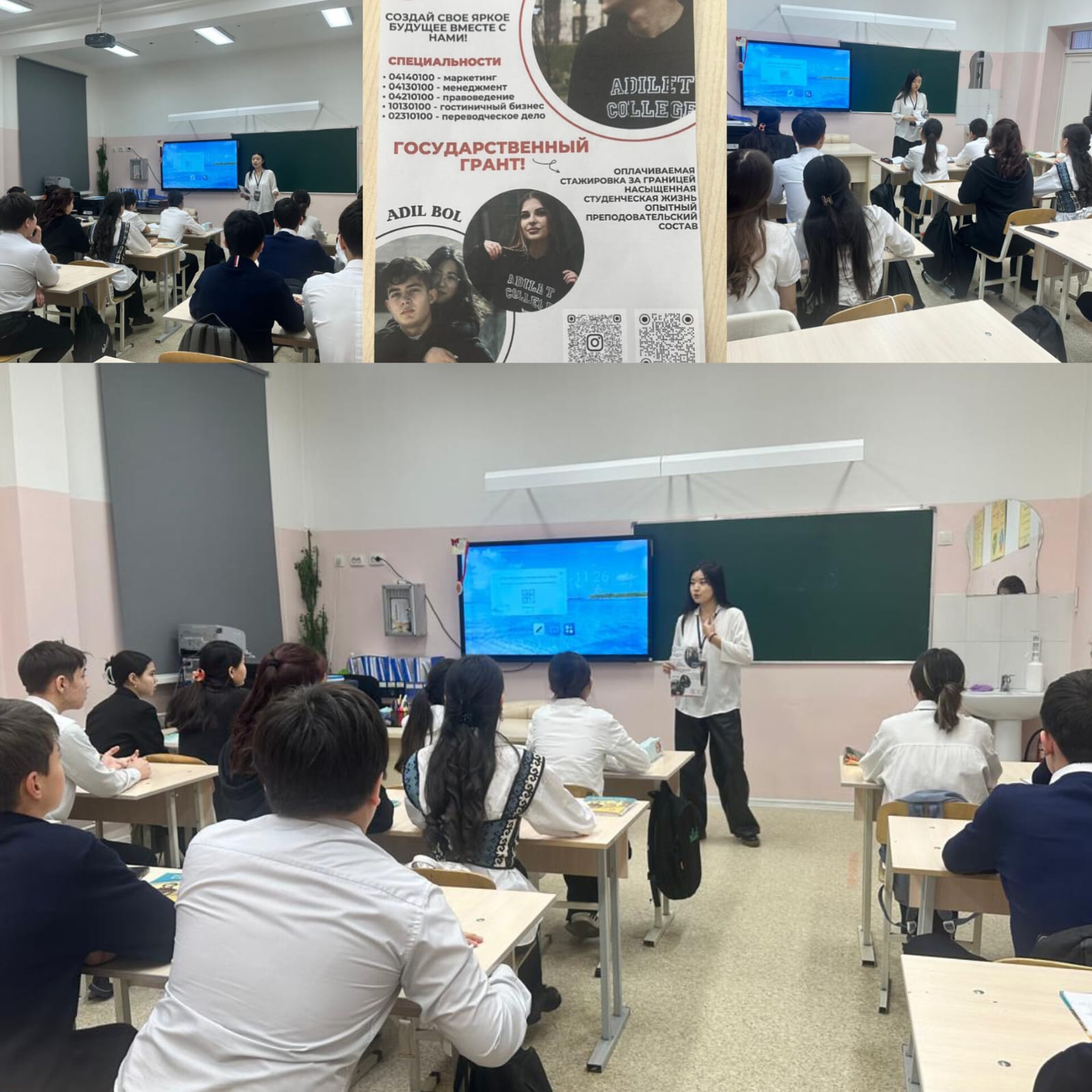 Рубрика "Біртұтас тәрбие".21.01.2025 года в школе проведена профориентационная работа представителями Адилет колледжа.Они рассказали учащимся 9-х классов о специфике учебного заведения, о специальностях на которые обучают в данном колледже.Обратили внимание на то, что в рамках года рабочих профессий важное внимание уделено именно рабочим профессиям.В ходе беседы они отметили, что в колледже организована активная внеурочная занятость , что их студенты принимают активное участие в различных конкурсах на уровне области и республики и имеют призовые места. Профориентатор предложил ученикам задать все интересующие их вопросы по данному колледжу и подчеркнул, что выпускники должны сделать правильный выбор будущей профессии и прийти к решению, где продолжить далее свое обучение.